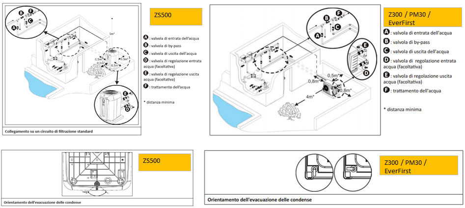 Il collegamento sarà realizzato con un tubo in PVC ø50, utilizzando i raccordi semi-unione forniti, sul circuito di filtrazione della piscina, dopo il filtro e prima del trattamento dell'acqua